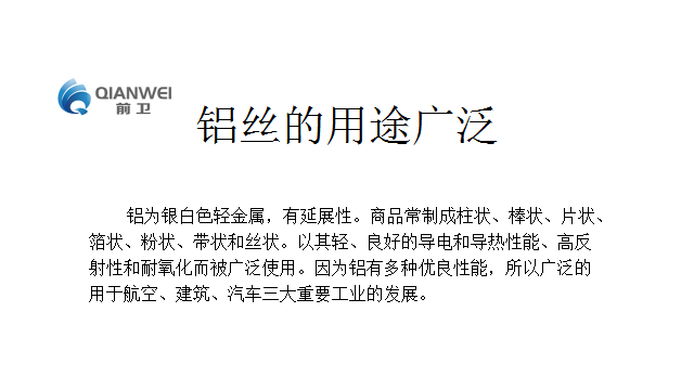 您現(xiàn)在所在的位置:卡扣廠家>新聞資訊>行業(yè)新聞>鋁絲的用途廣泛