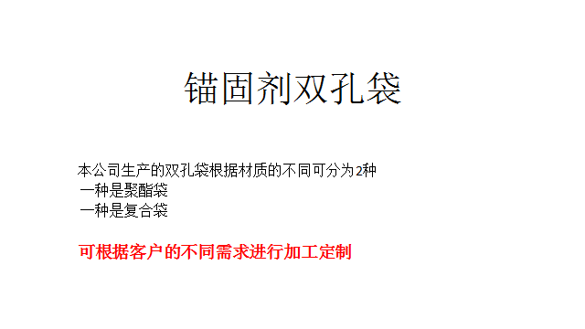 您現(xiàn)在所在的位置:卡扣廠家>新聞資訊>行業(yè)新聞>錨固劑雙孔袋